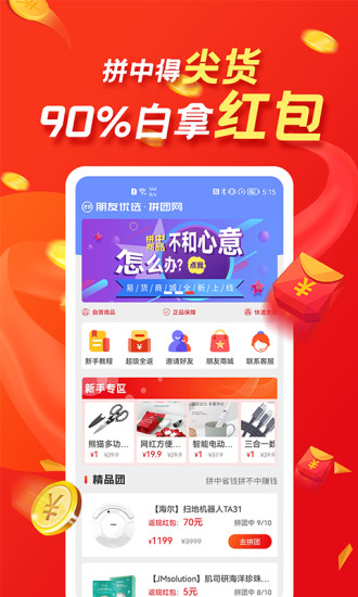 拼团网是一款公平公正的补贴型团购app,满团后一人拿好货,其余人拿现金红包补贴,拼中省钱,拼不中白拿红包,真正意义上的拼到拼不到都赚到!