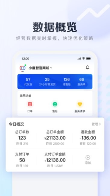 基木鱼开店是百度电商官方推出的商家移动工作台,商家的一站式全链路的生意经营工具,(APP支持实时消息触达提醒,便捷的店铺/订单管理,数据分析助力经营优化,)随时随时满足商家的生意经营需求。