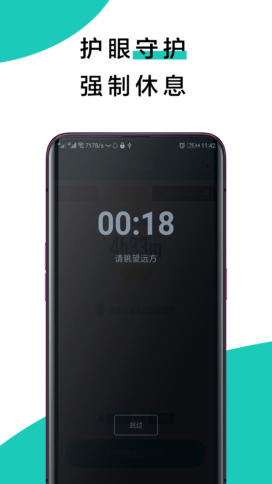 20秒护眼安卓版是一款保护用眼健康的软件。20秒护眼app用户们可以自由设置强制休息时间,劳逸结合,保护双眼。每天一点护眼时间,做一个健康少年。