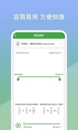 音乐剪辑器是一款操作方便的MP3剪切合并器工具。支持对MP3文件进行任意时间段的切割,也可以把多段音频合并成一个文件。