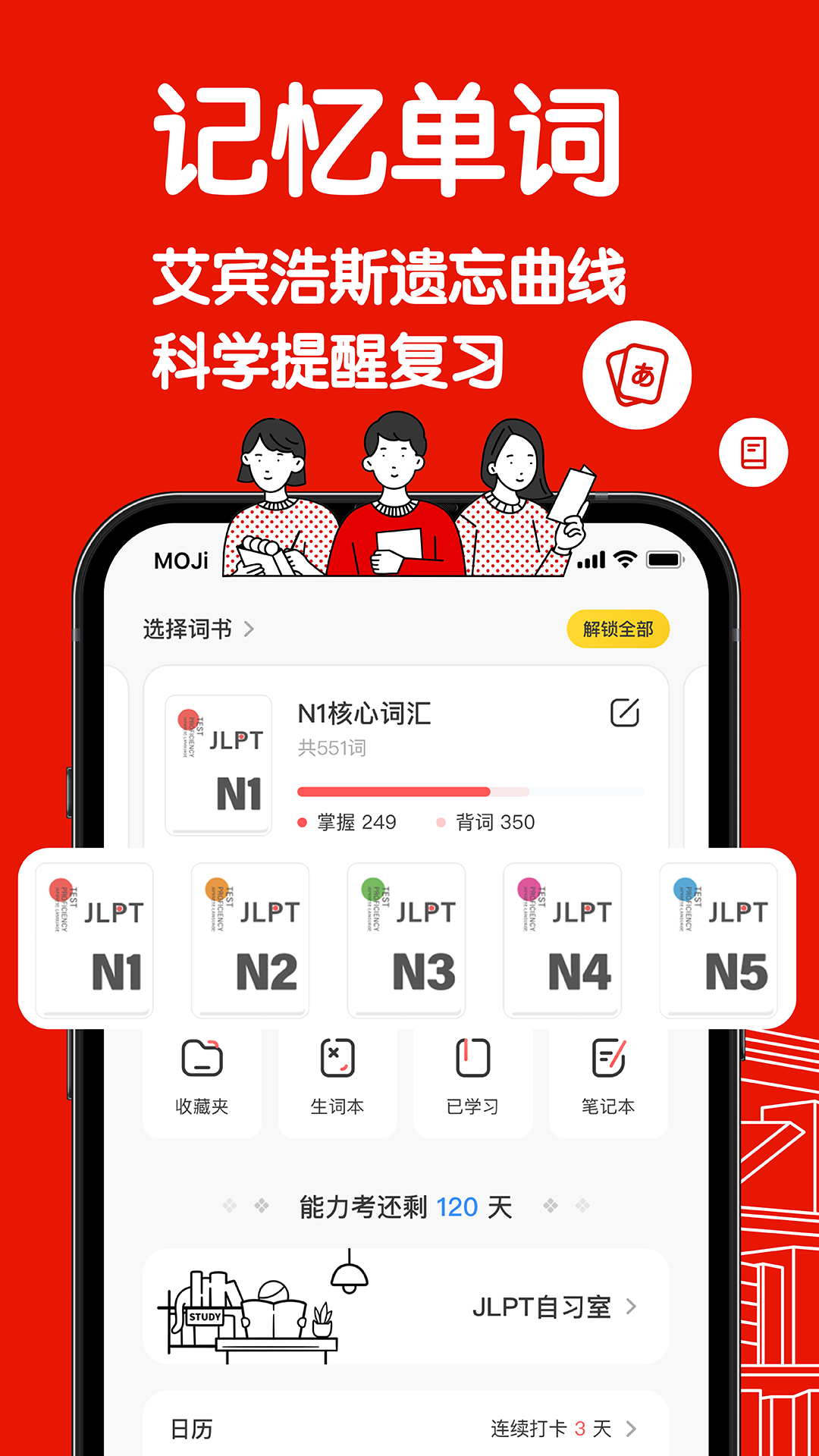 MOJiTest是专注于日语能力考(JLPT)的备考平台,提供N1-N5、考研、高考的权威词库,JLPT真题考场模拟,考级内容持续更新。在MOJiTest可以做什么?专业词库:N1-N5红宝书、N1-N3新完全掌握、高中人教版教材、考研日语蓝宝书等专业词库任你选。多种提醒选择,科学复习。体验真题考场:严格模拟真实考试,自动记分,制作专属题目册沉浸式学习:简单高效的交互,设置每日提醒,查看学习日历,加入自习室全班共同备考如何联系MOJi官方?通过APP>设置>联系我们微信公众号:MOJi辞書(←客服找这里)微博:MOJI_SERIES 财神爷站提供MOJiTestapp官方版下载地址,有需要的用户可免费下载使用!