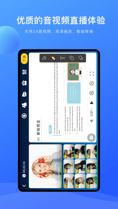 2.PPT动画:支持复杂PPT动画功能,可以在直播过程中播放PPT动画及音视频文件。