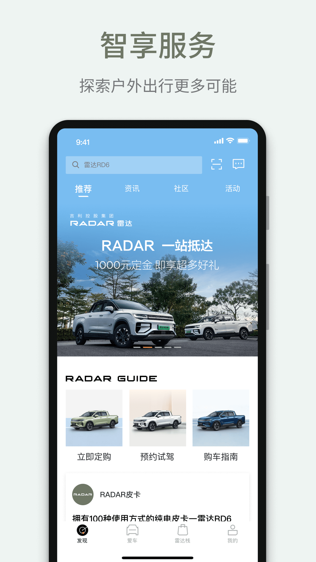 4、社区 雷达车友用车生活分享交流、互动交友,共创社区灵感,获取丰厚积分奖励