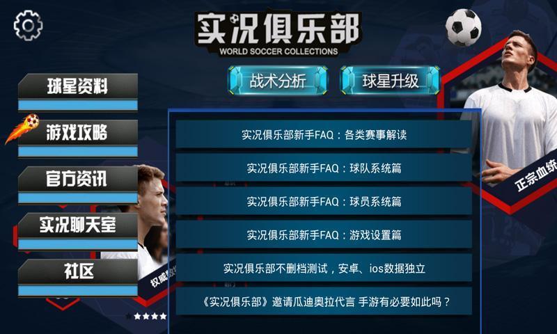 最新的游戏资讯、最全的球员数据库、高质量原创攻略、战术分析、球星升级资料,《实况俱乐部》掌上百科全书。更有实时群聊、私聊功能,支持文字、语音等多功能聊天,让你的游戏不再是一个人的战斗,让《实况俱乐部》成为千万人的足球狂欢。