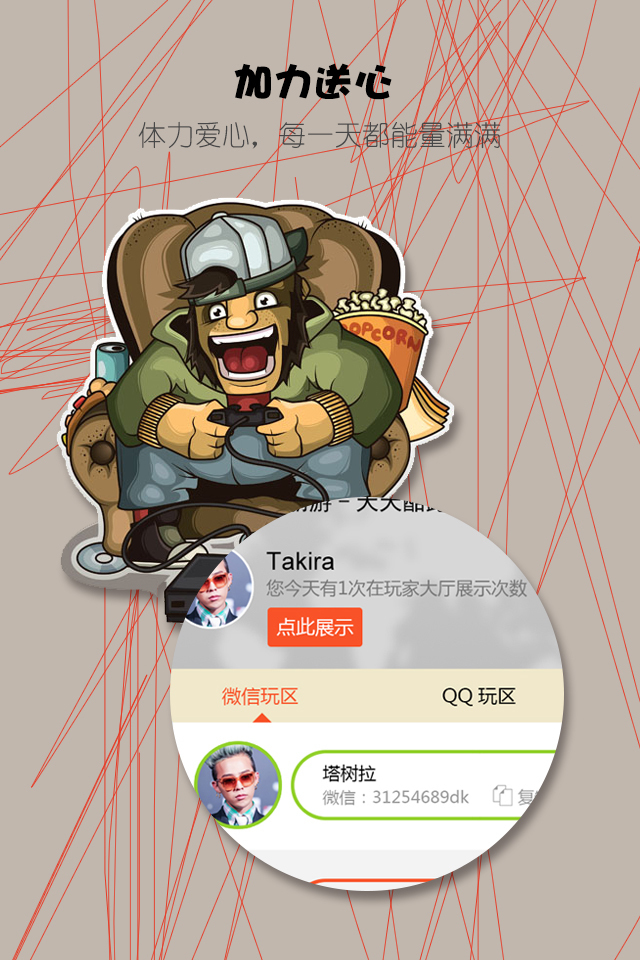 “伴我游戏”是一款专注服务游戏玩家的手机应用。 以游会友是“伴我游戏”app的一大特色。“伴我游戏”针对腾讯游戏及各大手游设计的“展示大厅”功能,能够让用户随时为自己或其他游戏玩家加体力、送爱心等,更能结交广大游戏爱好者。除此之外,“伴我游戏”还能实时更新游戏攻略,帮助玩家闯关升级!