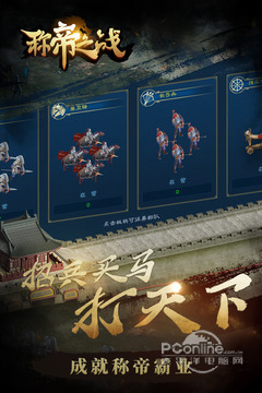 《称帝之战》是以真实再现三国群雄割据的战争场景的手机游戏。1000多个城市相互攻伐,武将俘虏劝降,拒绝抽卡深坑,精致的古代建筑风格,真实的战斗操作体验!喜欢策略游戏,喜欢三国题材,喜欢高精度画面!尽在《称帝之战》!