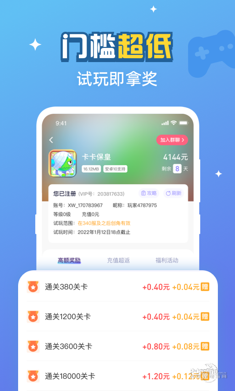 游返利是一家专业的游戏返利平台,为玩家提供海量优质游戏和真实可靠的游戏返利服务。玩家可以在游戏盒内免费下载游戏,查游戏攻略,领游戏礼包,并且还可以跟其他玩家交友互动。完成任务即返现,不花钱也能当大佬。