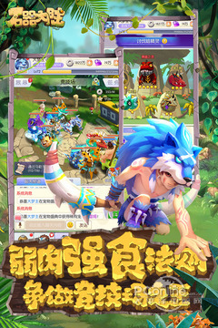 这是一片神秘的大陆,带你重温原始部落的奇妙生活,恐龙穿越遇见原始人,驯服各式怪物为部落而战!捕获各式Q版萌宠,养成独特技能,合理组合搭配,驰骋大陆!还有各式特色玩法,守卫自己的部落,探索神秘丛林,成为石器大陆的勇者王!