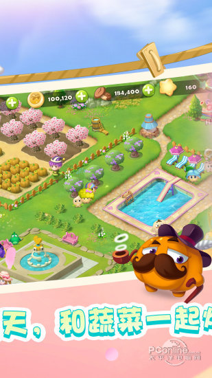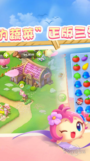 “燃烧的蔬菜”出品正版三消游戏,闯关就能解锁蔬菜宠物,萌化你的少女心。