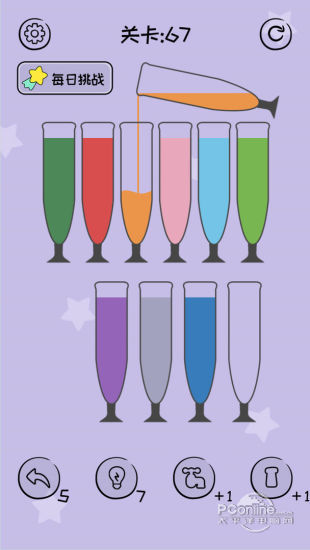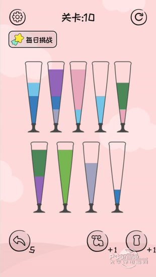 倒沙我贼溜是一款轻松有趣的拼图开心拼一拼游戏。对杯子的颜色进行排序分类,直到所有颜色都相同为止。玩法规则简单,但只有将颜色相同的连接到一起并杯上有足够的空间时,才可以进行液态拼图排序分类。等你将所有颜色全部归类好才可以进入下一关,倒沙我最强。