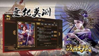 《战国幻武》是一款以日本战国时代为背景的即时战略卡牌游戏, 游戏以日本1560年战国时期为背景,玩家将和众多知名的日本战国时期历史人物一起,在局势瞬息万变的战场上列阵、夹击,或是偷袭敌人;通过数十种原创战法(技能)扭转战场,取得胜利。 在战场外,玩家还可以对自己所拥有的城池进行建设,通过对城池、武将居所、兵粮仓、钱库、农田等建筑的建设,让城池持续地发展,产出丰富的资源以培养武将。 此外,本作还有独有国战玩法,武将阵容成型后,玩家可以选择参与国战,有机会与其他玩家一起斗智斗勇,争夺天下。