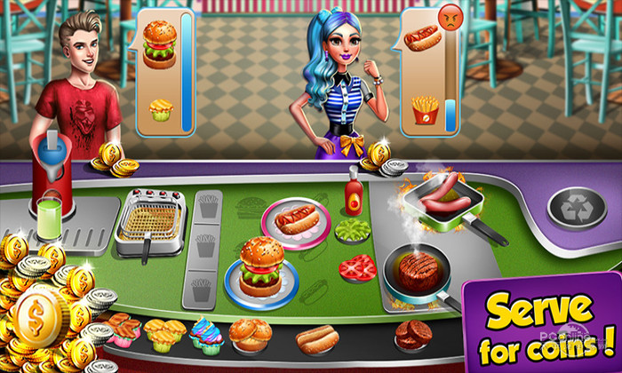 一款经营餐厅的休闲游戏,在游戏刚开始时,你只能做简单的菜肴,客户很容易取悦,而且你赚的钱也不是那么多。对于所有的客户,您的烹饪速度必须尽可能快。在赚钱后可以升级餐厅的烹饪工具,提高服务时间和菜品质量,赚取更多的钱。
