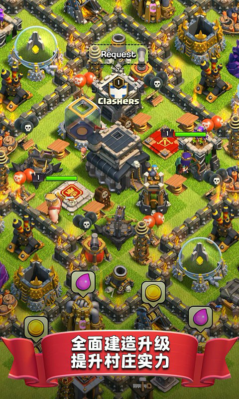 ● 部落冲突百度版最新版下载将大本营升至13级,让来犯之敌尝尝巨型地狱之塔的炽热怒火!