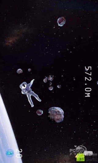 一款休闲游戏。宇航员的飞船被一场突如其来的事故摧毁了。没办法,他只能弃船而逃。带着身上仅剩的氧气瓶,向地球前进,不要沿途需要躲避陨石的攻击,你能帮助他顺利返回地球吗?