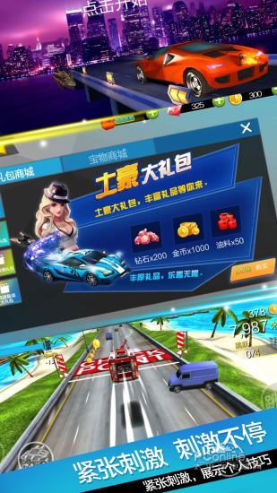 击等精彩道具超越对手,赢得车王宝座。各种个性跑车帅气酷炫,坐享炫酷车辆,让你体验超爽的赛车游戏!