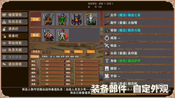 游戏目前在众筹中:(希望大家关注一下,哪怕是点个关注度都行的)《杀戮地城》是一款由个人开发的像素风格冒险游戏。在游戏中,玩家需要合理搭配操作角色的种族、职业、装备和技能组成小队进行地城探索,探索中会遇到各种各样的事件,这些事件会根据玩家当天所处的天气、地形、善恶值、队伍成员构成产生不同的结果,在地城冒险中不可避免会陷入战斗,合理的队伍构成会极大增加战斗的胜率,在地城探索中,你可以用的各种物品强化队伍,游戏还在不断完善中,如果有任何觉得不合理的地方,欢迎反馈给作者,希望您喜欢这个游戏。
