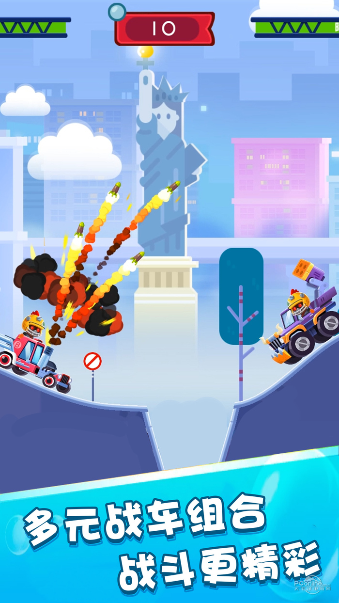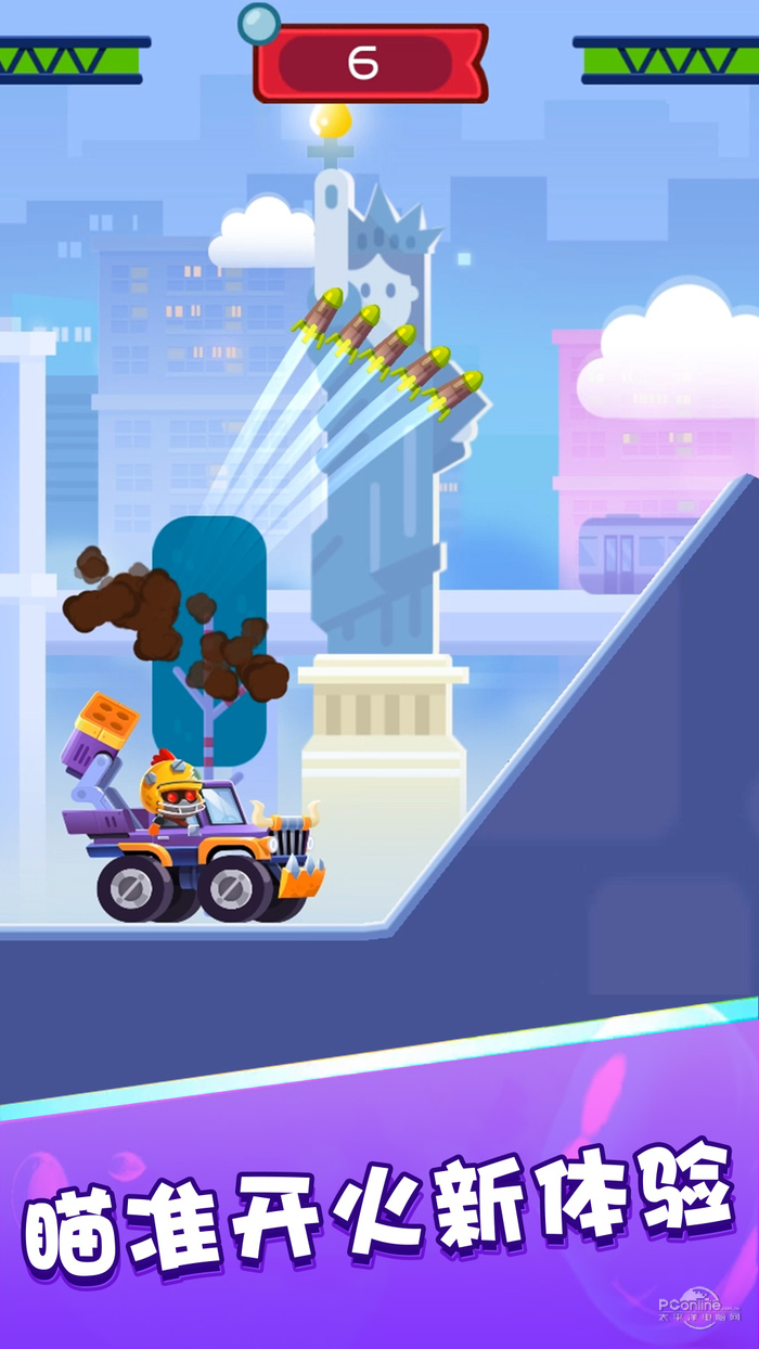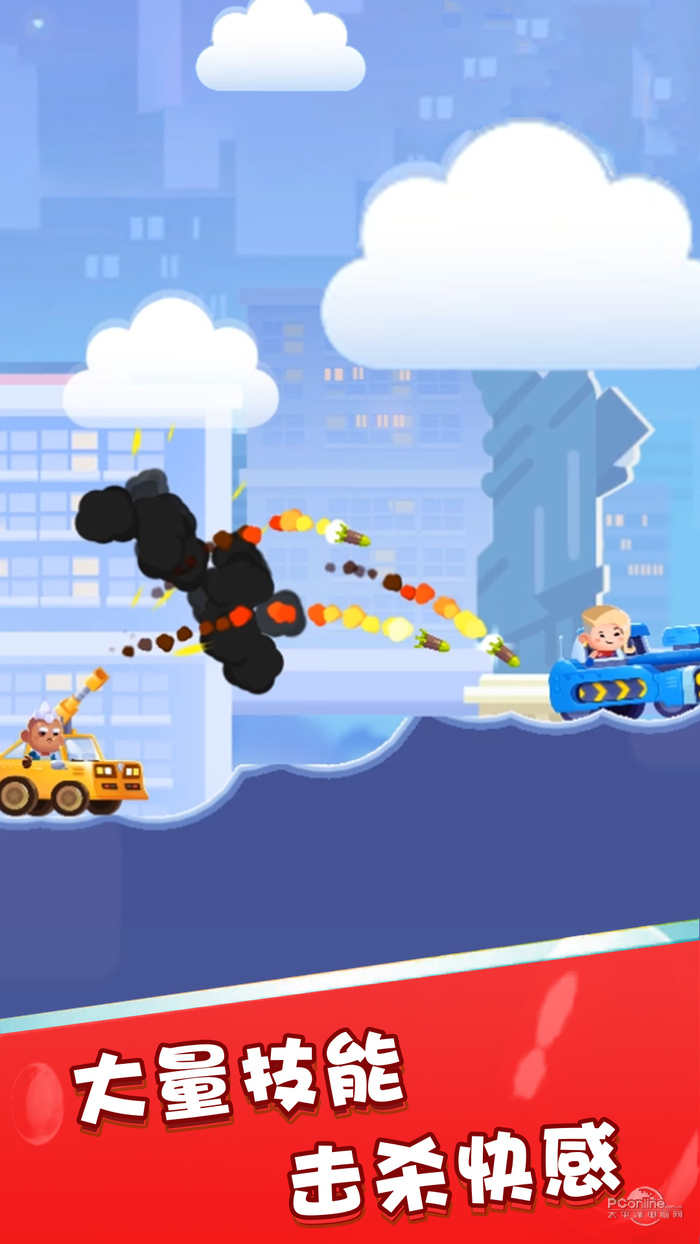 1.调整正确的角度射击,使用技能道具,听到闪电战的惊人冲击速度,摧毁战争世界中的对手。