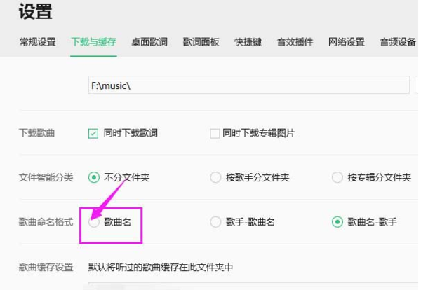 4、随后,在这一栏,有一个【歌曲命名格式】,在这里设置即可。