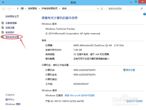 2,在属性窗口中,左侧最后一个选项叫做“高级系统设置”,我们点击它。