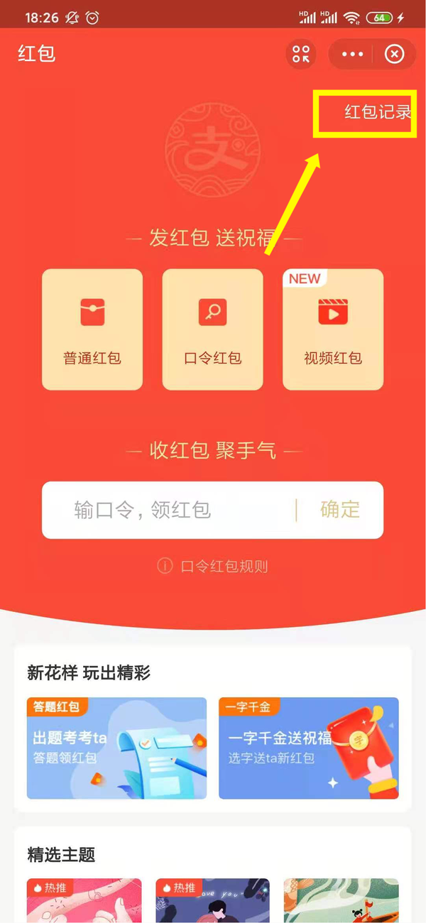 第二步,进入支付宝红包页面,点击右上角的【红包记录】;