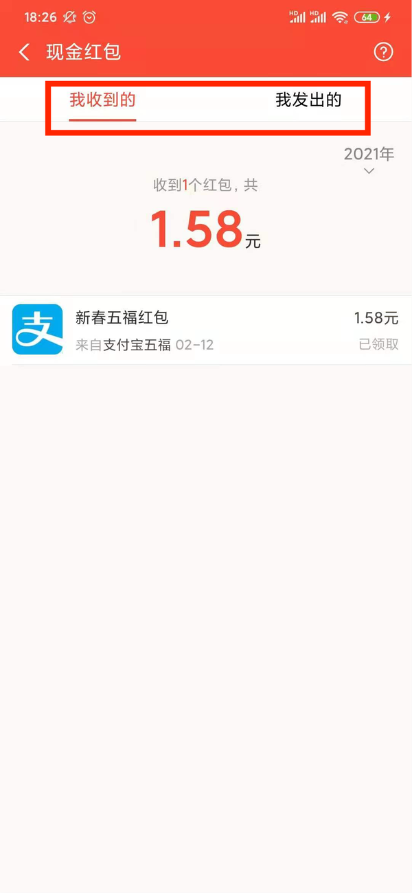 第三步,先打开的页面是“我收到的”红包,在页面上方可以转移到“我发出的”。