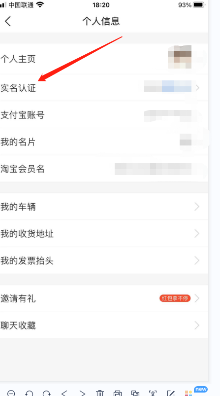 第三步:然后就会进入到个人信息的界面,会看到有一个实名验证,然后点击它。