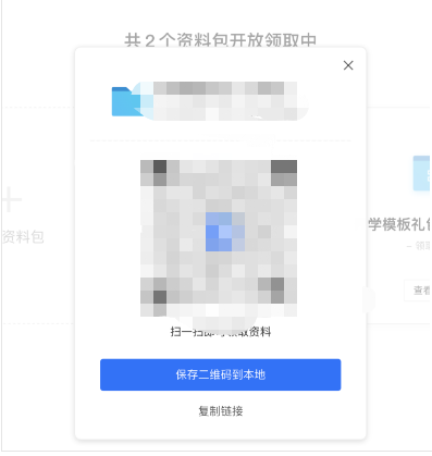 4、制作成功后,会出现【资料包】的二维码,你可以将其保存到本地,也可以直接复制链接。两种方式都能将【资料包】分享给他人领取。