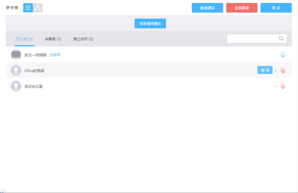 在督导模式下,被督导的分会场解除强制静音状态并允许与主会场交流,其他分会场禁止收听。此模式多用于远程监考、远程督导等场景中,以实现主会场对个别分会场的私密通话功能。