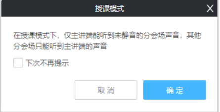 3、仅当已设置主会场的前提下,主持人可开启授课模式。