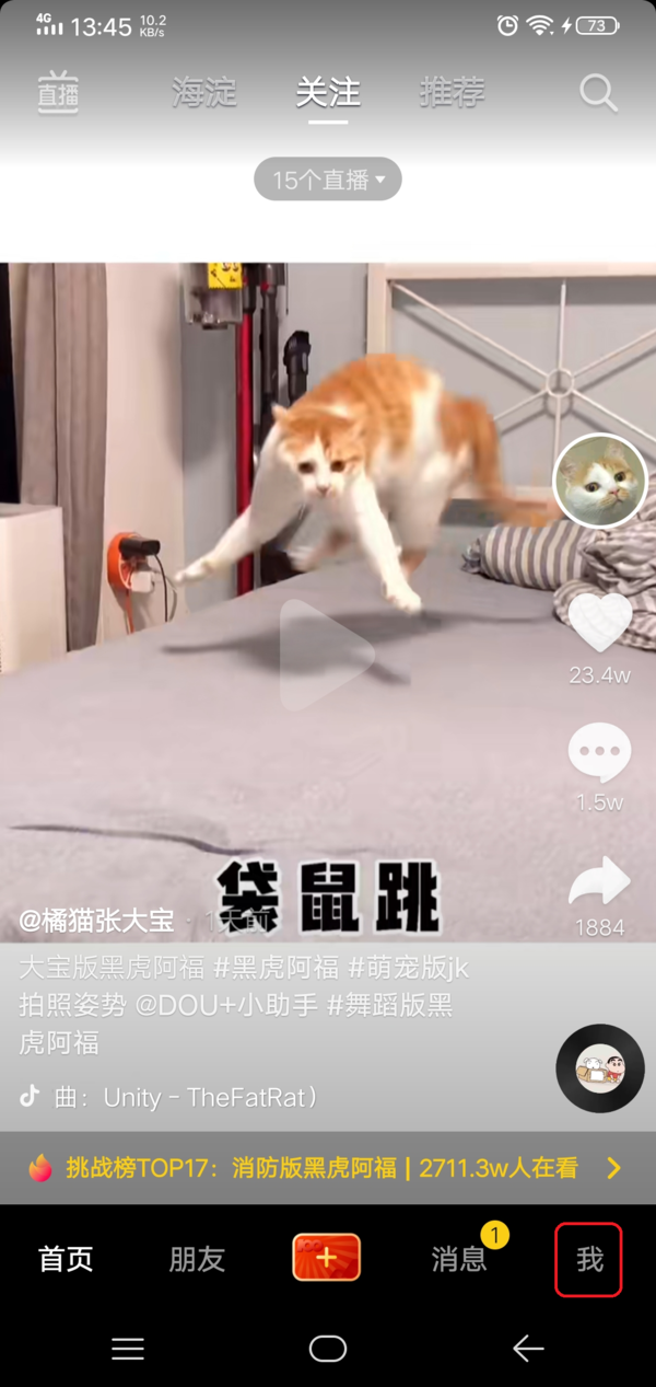 第一步,打开抖音软件,进入到软件的主界面当中后,点击界面右下角的【我】选项。