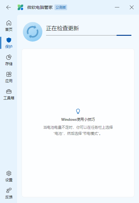 2、微软电脑管家会自动进行更新检查,需要我们等待一段时间,检查过后如果可以更新会显示有更新可用,点击【立即更新】即可。