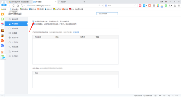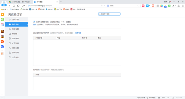 这里我们需要注意的是,如果关闭了账号管家的功能,之后访问网站就不会再有保存网站密码的提示,再次登录该网站时就需要手动输入账号与密码。