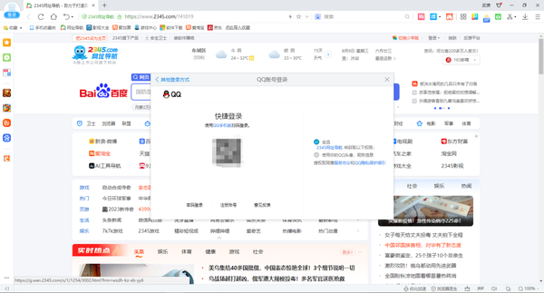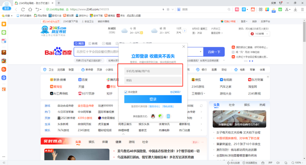 此外,在2345加速浏览器上还支持用2345账号登录,输入原2345加速浏览器账号密码即可登录。