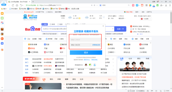 这可以说是非常方便的登录方式了,我们只需在登录框输入手机号,再将获取的验证码输入到验证码栏,即可完成登录,另外,即使是我们第一次使用2345,该方式可直接为我们注册账号,省去很多麻烦。