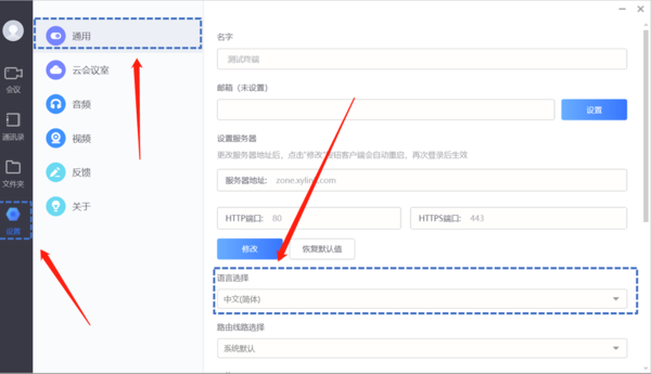 1、我们首先打开小鱼易连,登陆账号后,位于主界面左侧,找到【设置】按钮,随后在中间选择【通用】,在右侧下拉列表找到【语言选择】,在这里即可切换成英文了;