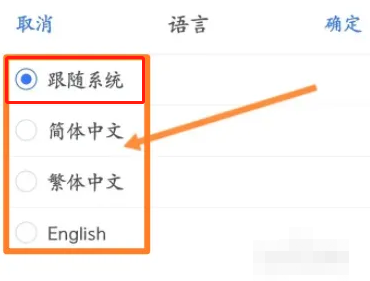 3、在这里即可看到我们可以设置简体中文、繁体中文、英文等等,还可以让软件直接跟随系统设置,即系统语言是什么,软件的语言就是什么。