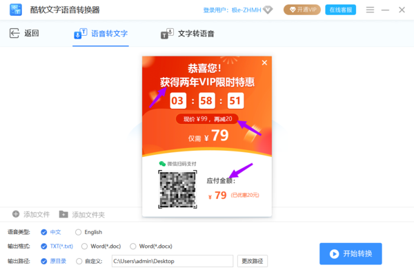 根据查找到的资料来看,截止目前酷软文字语音转换器vip会员的付费方式只支持微信扫码支付。