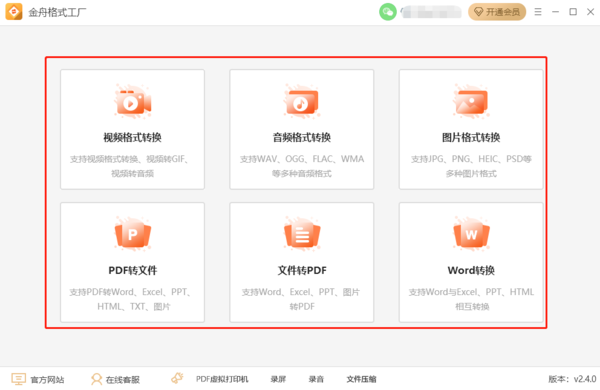 小编就以金舟格式工厂为例,为大家介绍如何使用万能格式软件软件吧,首先,当我们下载好金舟格式工厂后,打开软件,选择需要转换的格式,