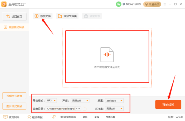 点击进入后将文件拖进软件中,或者点击中间空白处,进行添加文件,然后在下方选择一些设置选项,最后点击开始转换,等待一段时间后,即可完成转换。