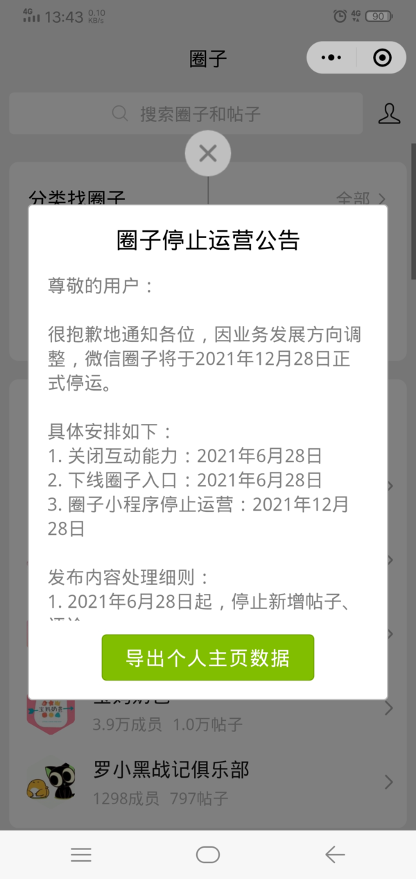 日前,微信圈子将要停运的消息一经发出,很多小伙伴就炸锅了,微信圈子是啥?是朋友圈吗?为什么要停运?等一系列的疑惑就开始出现了。而其实微信圈子是微信当中的一个功能,同时在5月份,微信圈子也发布公告标识,因为业务发展方向调整,微信圈子将于2021年12月28日正式停运。