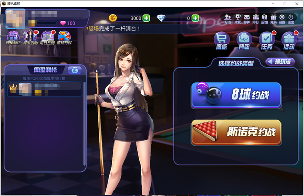 对于其他模式,我们只要通过打几盘八球1v1,获得一些经验值,达到3级之后即可解锁。