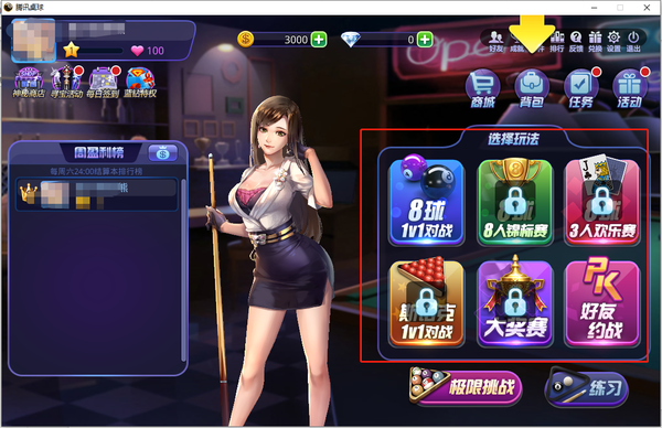 八球1v1和好友约战,这两个模式是我们刚进入游戏就可以游玩的,无需任何解锁条件。
