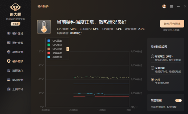 如果追求功能多样性,那真的推荐360安全卫士,它算得上数一数二的电脑安全软件,并且功能非常多,多的同时每个功能都做的非常专业,悬浮加速球可实时监控硬件温度,同样具备高温报警、降温协助等功能,非常好用。