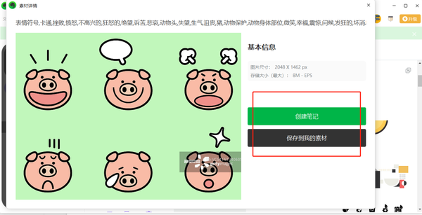 3、进入后可以选择【保存到我的素材】或者【创建笔记】都可以。