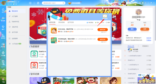3、在我的任务界面,点击上方的【游戏任务】或者【金币任务】,点击【接受任务】按要求完成后即可获得相应的金币奖励。