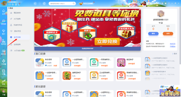 1、进入QQ游戏大厅商店界面后,点击【金币兑换】,就能查看我们可以使用金币兑换的全部商品。
