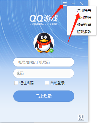QQ游戏大厅登录方式一:账号/手机号/邮箱