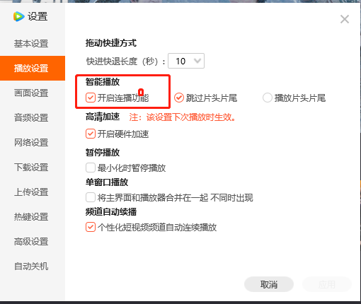第四步:找到开启连播功能,就能够自行开启或关闭连播功能了。