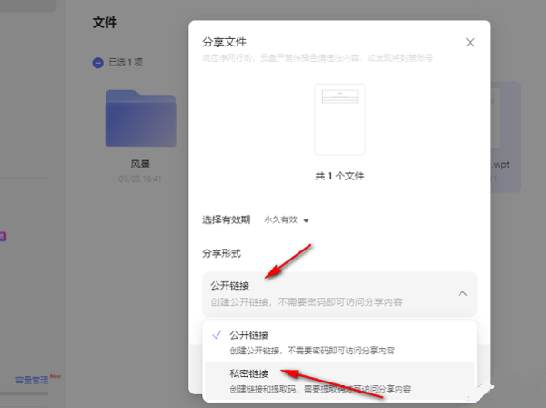 2、可以看到,分享形式分为【公开链接】和【私密链接】两种形式: