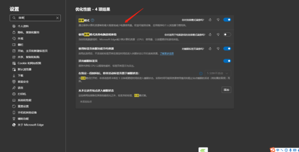 【Microsoft Edge】是微软开发的一款浏览器,如果大家想要更贴合Windows系统的浏览器,可以选择它,Edge同样具备省电模式,但名字叫做【效率模式】,我们在设置中搜索效率模式即可找到,开启后可最大程度减少电源使用量。